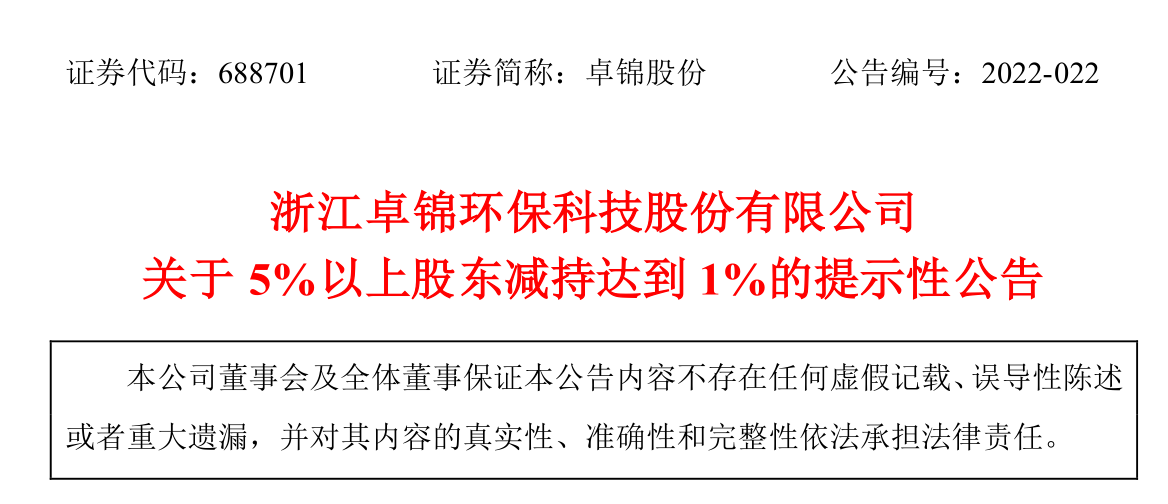 附件:浙江卓錦環(huán)??萍脊煞萦邢薰娟P(guān)于5%以上股東減持超過1%的提示性公告