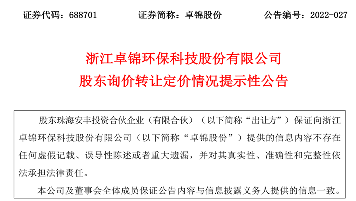 股東詢價(jià)轉(zhuǎn)讓定價(jià)情況提示性公告
