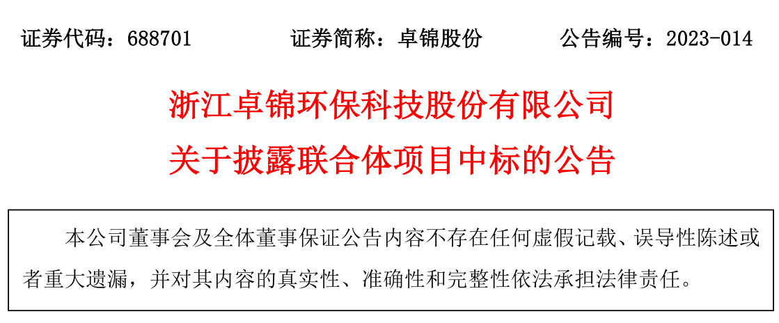 關(guān)于披露聯(lián)合體項目中標(biāo)的公告