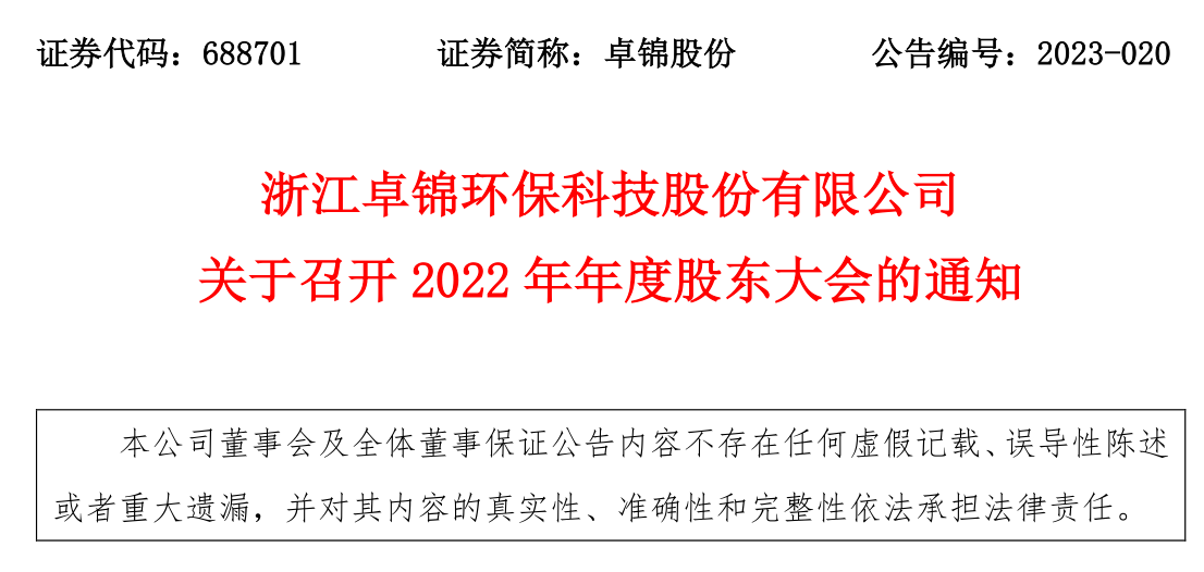 關(guān)于召開2022年年度股東大會通知