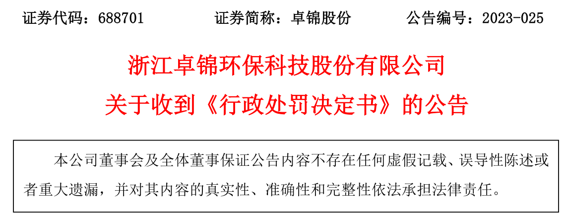 關于收到《行政處罰決定書》的公告