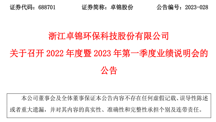 關(guān)于召開2022年度暨2023年第一季度業(yè)績說明會的公告