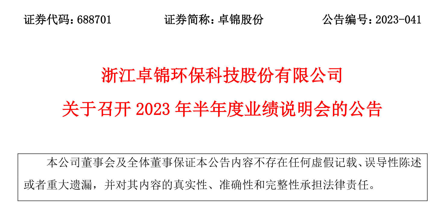浙江卓錦環(huán)保科技股份有限公司關于召開2023年半年度業(yè)績說明會的公告