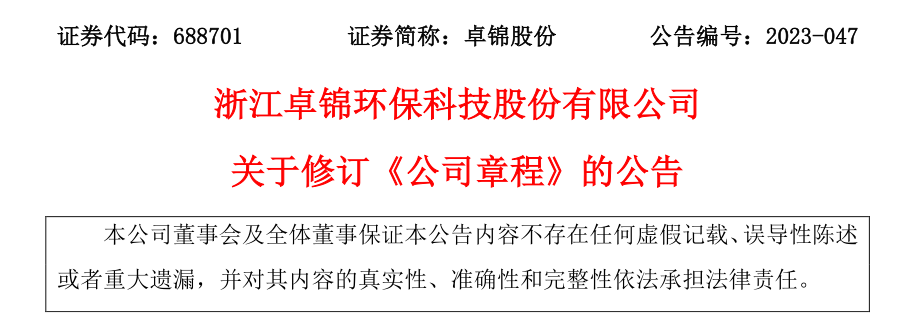 附件:浙江卓錦環(huán)??萍脊煞萦邢薰娟P(guān)于修訂《公司章程》的公告
