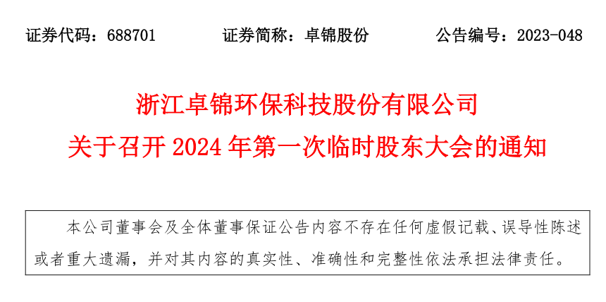附件:浙江卓錦環(huán)保科技股份有限公司關(guān)于召開(kāi)2024年第一次臨時(shí)股東大會(huì)的通知