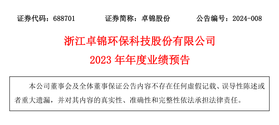 附件:浙江卓錦環(huán)??萍脊煞萦邢薰?023年年度業(yè)績(jī)預(yù)告