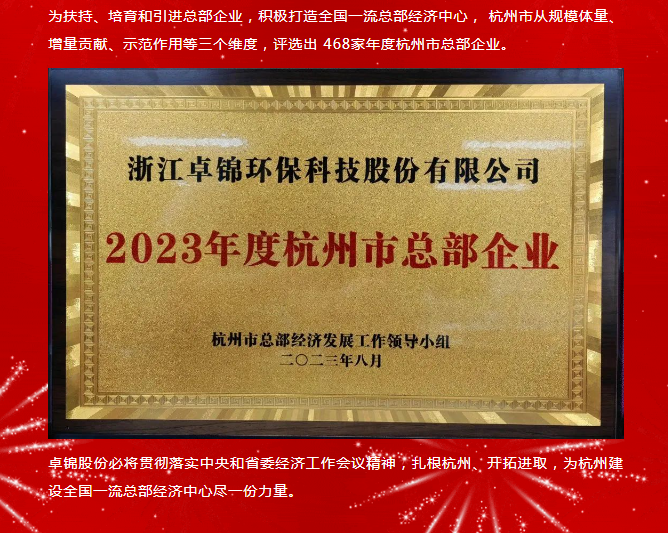 卓錦股份榮獲“2023年度杭州市總部企業(yè)”授牌