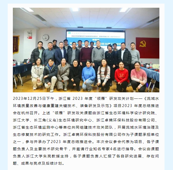 浙江省 2023 年度“領(lǐng)雁”研發(fā)攻關(guān)計(jì)劃——《流域水環(huán)境質(zhì)量改善與健康重建關(guān)鍵技術(shù)、裝備研發(fā)及示范》項(xiàng)目年度總結(jié)推進(jìn)會(huì)順利召開