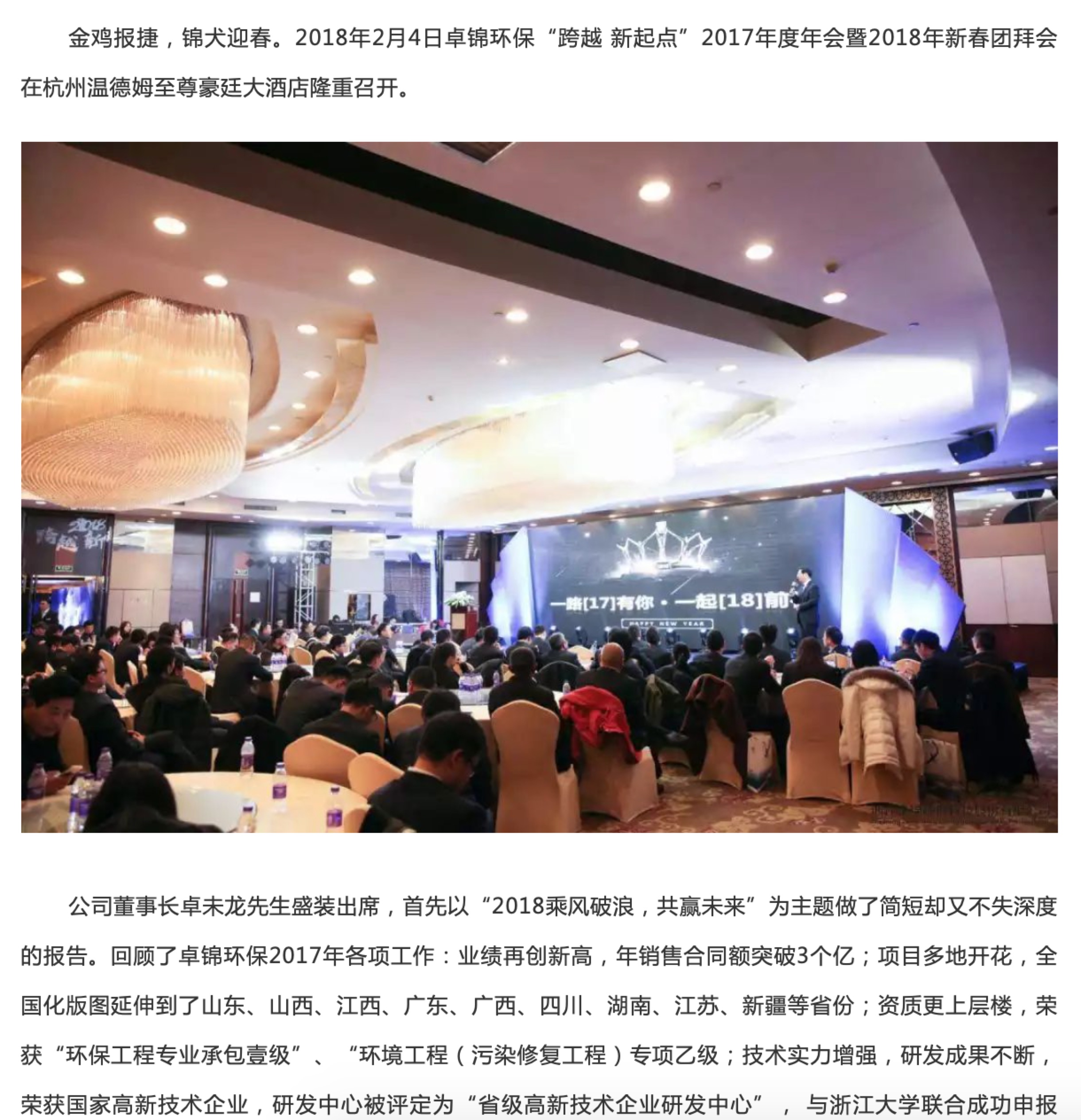 卓錦環(huán)保“跨越 新起點”2017年度年會暨2018年新春團拜會”盛況新鮮出爐