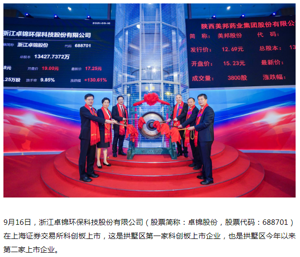 卓錦環(huán)保,今日鳴鑼上市!拱墅迎來第20家上市企業(yè)