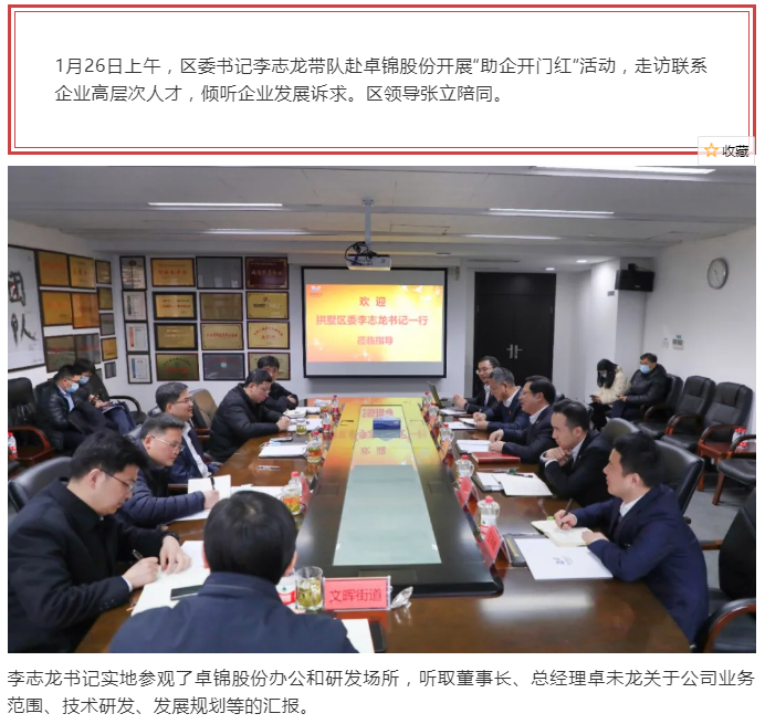 拱墅區(qū)委書記李志龍帶隊(duì)赴卓錦股份開展“助企開門紅”活動(dòng)