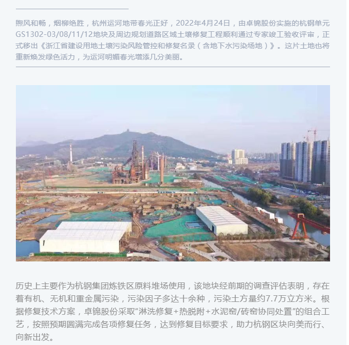 錦上添花|杭鋼單元GS1302-03/08/11/12地塊及周邊規(guī)劃道路區(qū)域土壤修復(fù)工程順利完工