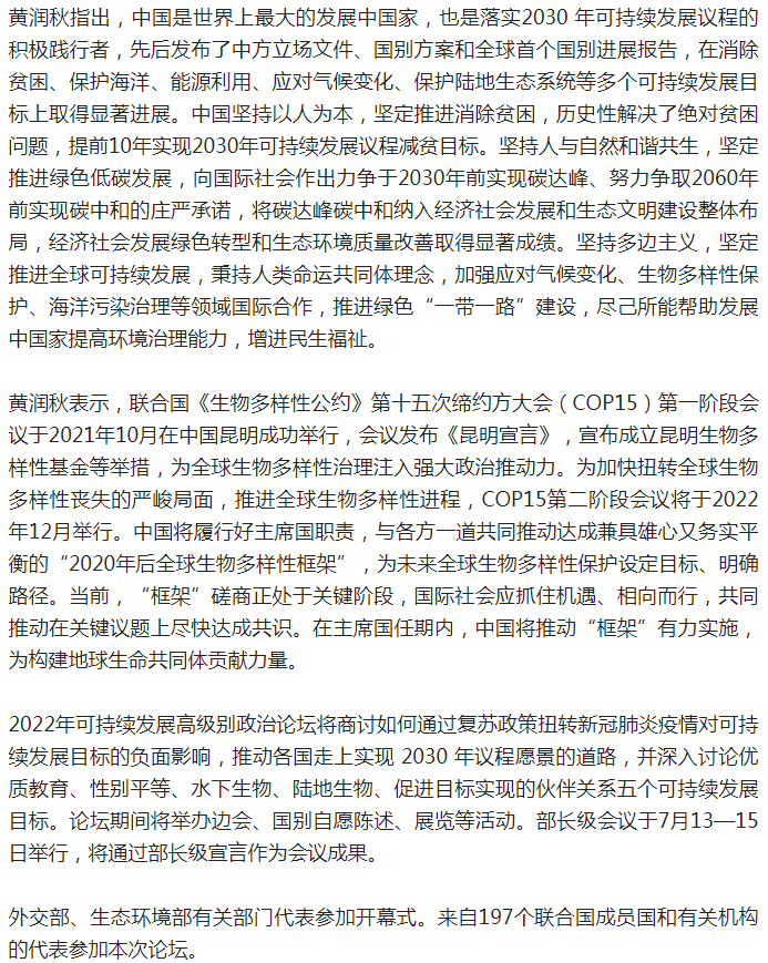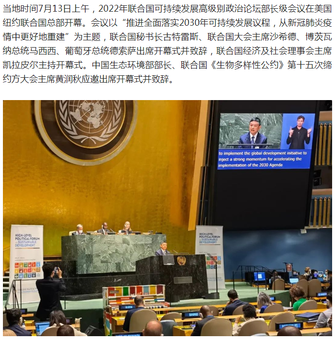 生態(tài)環(huán)境部部長黃潤秋出席2022年聯合國可持續(xù)發(fā)展高級別政治論壇部長級會議開幕式